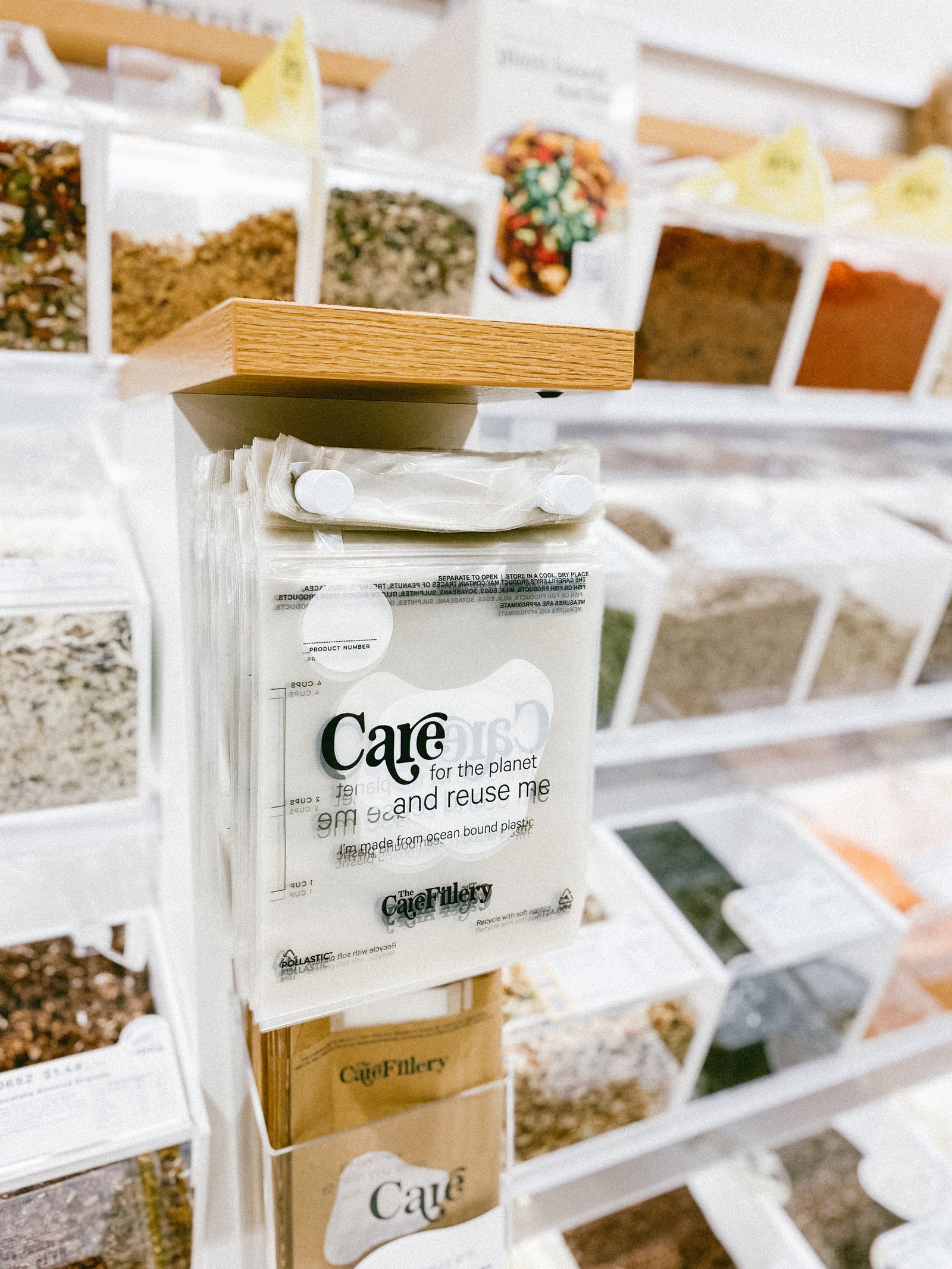 These resealable bags are foodsafe and made from at least 70% recycled Ocean Bound Plastic. They can be customized to fit your brand requirements and have a press-together seal to make them easy to open and close.